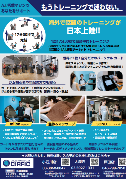 最新鋭マシンmilonによる1周17分半の全身トレーニング&有酸素運動
