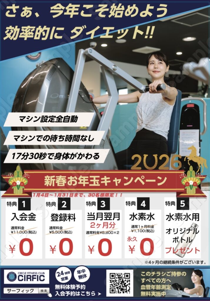 2026年1月1日~2026年1月31日まで無料体験①入会金11,000円→0円